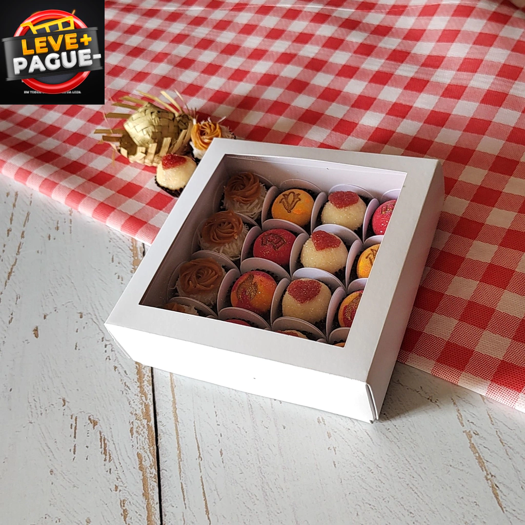 Produto - 10 Caixas para 16 brigadeiros/bombons - Branca - altura 5cm - Visor Transparente