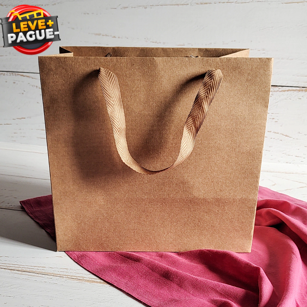 Produto - Sacolas Média 27x25x16 com Alça de Gorgurão - KraftDescubra a praticidade e elegância das nossas sacolas médias!