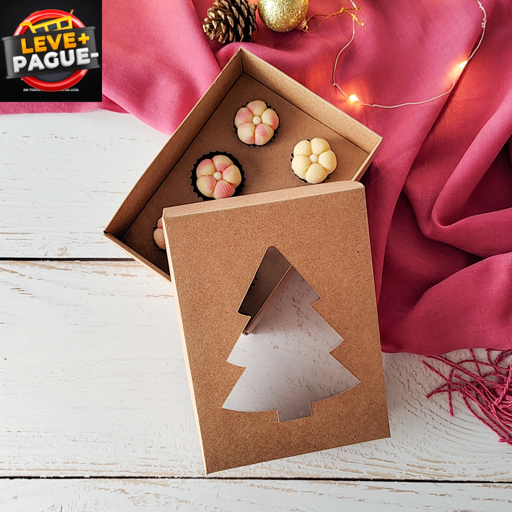 10 Caixas com berço para 06 brigadeiros - Kraft - Visor Pinheiro
