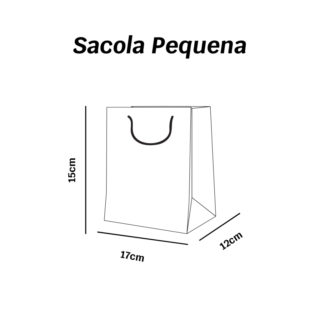 Transforme suas apresentações com as Sacolas Pequena 17x15x12cm! Seja em festas ou em ocasiões especiais, essas sacolas vão encantar seus clientes e agregar valor ao seu presente. Sinta a diferença que um detalhe elegante pode fazer!