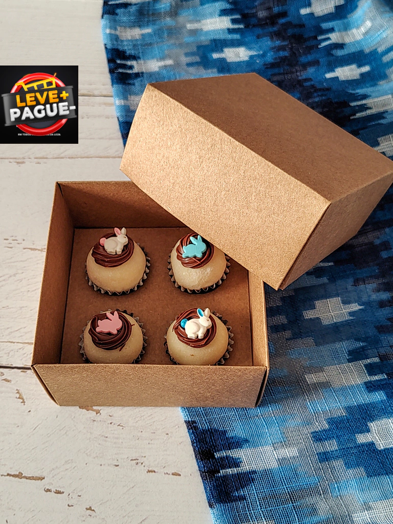 Caixa com Berço para 4 Brigadeiros Kraft - Tampa Papel - 20 a 27g