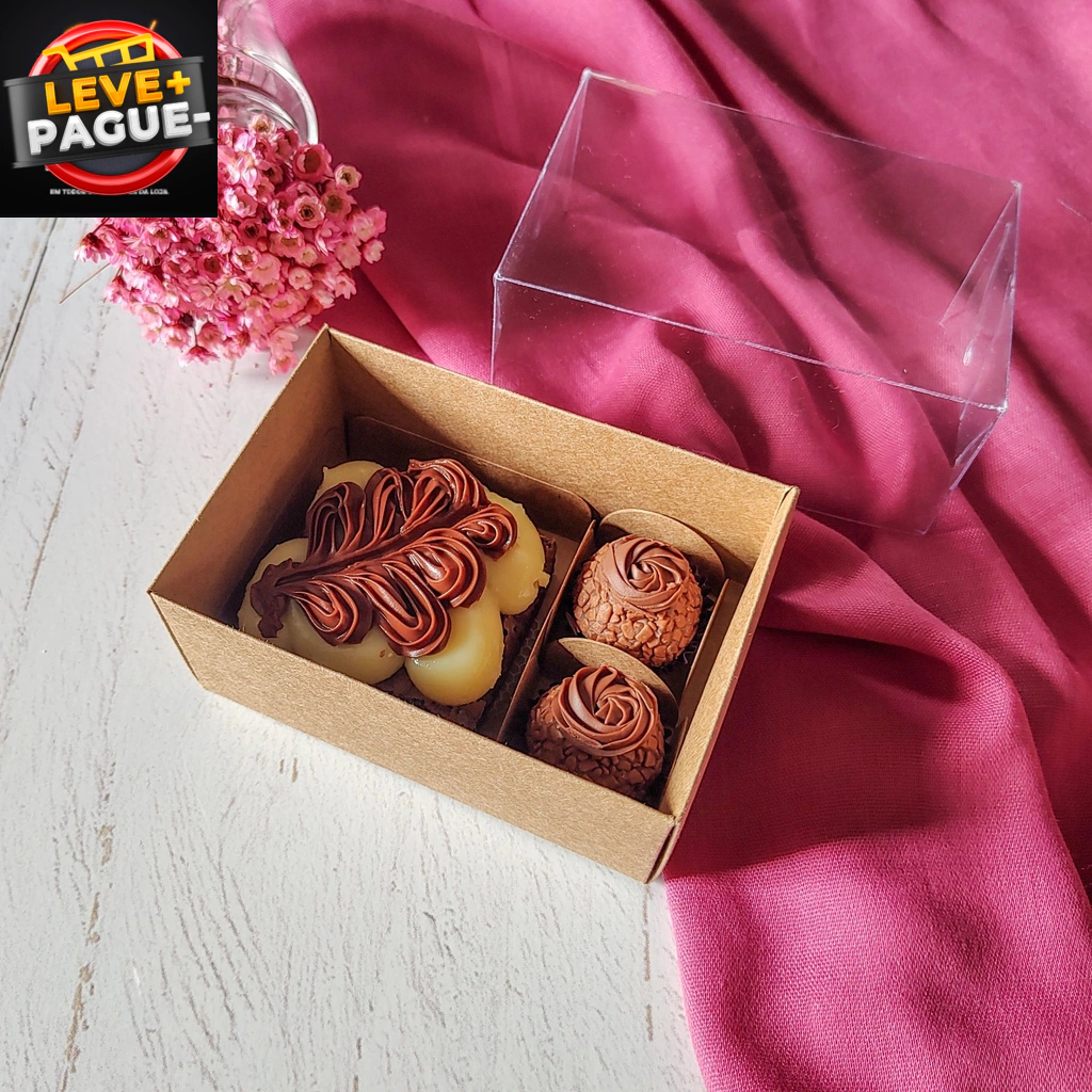 Produto - 10 Caixas para 1 Brownie + 2 Doces - Kraft - altura 5cm - Tampa transparente