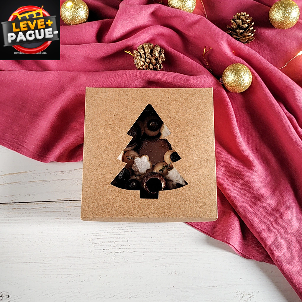 Produto: 10 Caixas 14,5x14,5x5cm - Branca - Tampa visor pinheiro - Mini Guirlanda