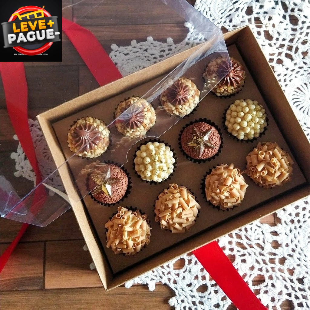 Produto - 10 Caixas com Berço de Papel para 12 Brigadeiros Kraft - Tampa Transparente