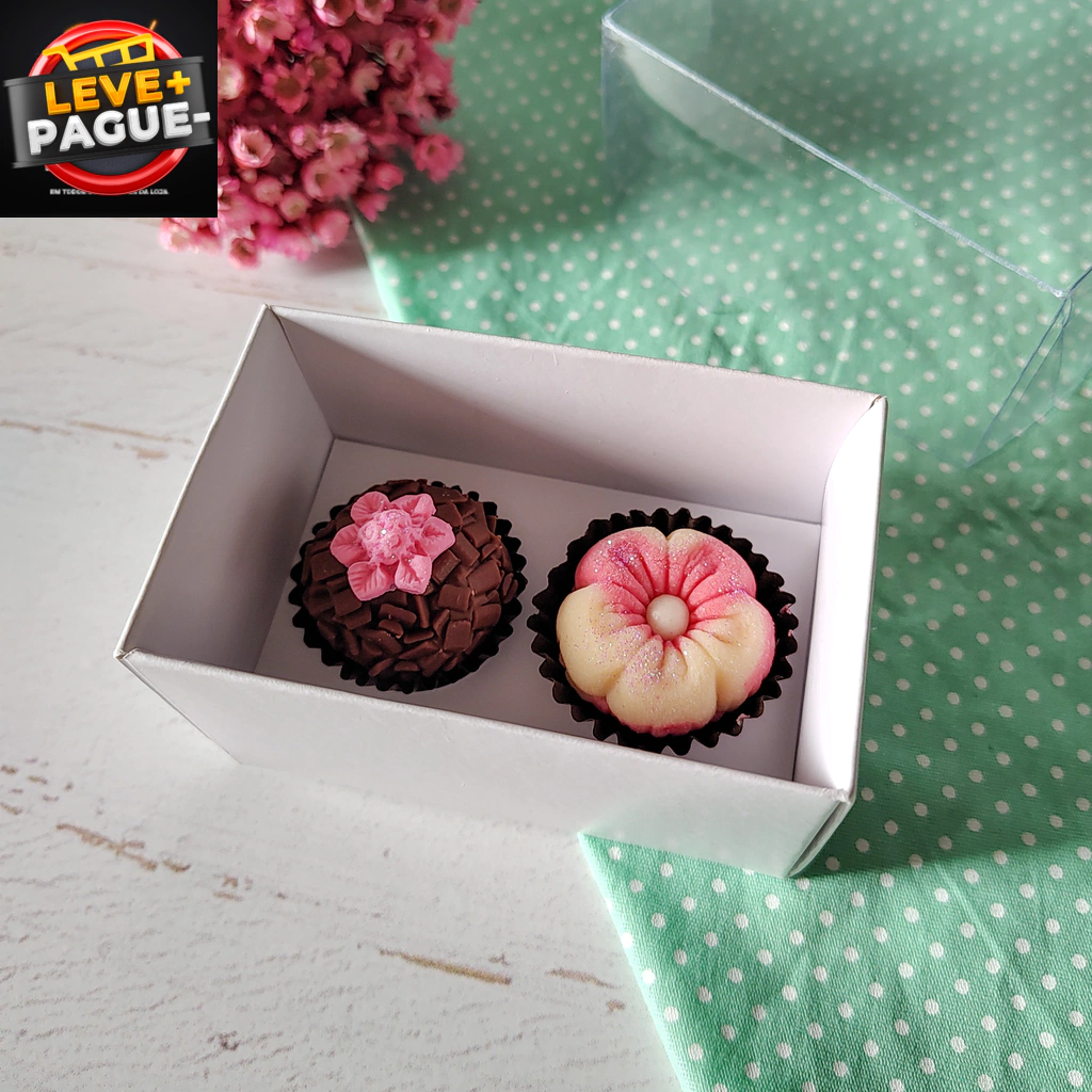 Produto: 10 Caixas com berço para 2 brigadeiros - Branca - Tampa transparente - altura 5,5cm