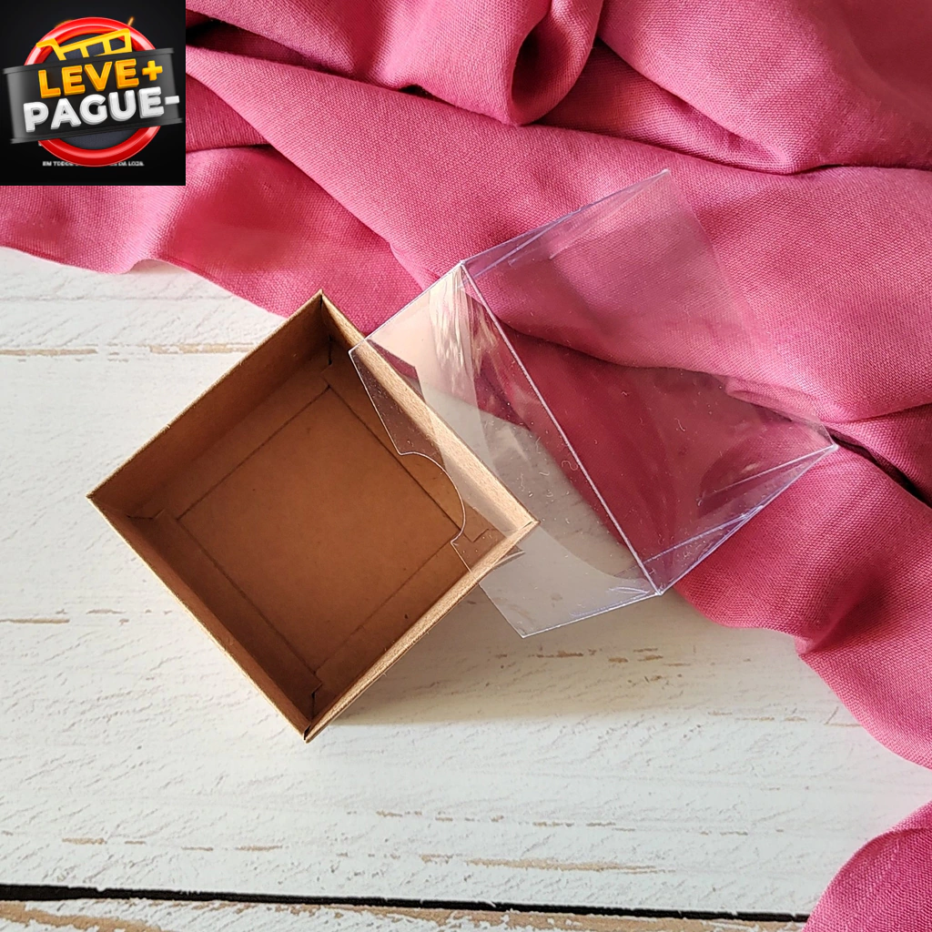 Produto - Caixas multiuso 8x8 - Kraft - altura 5cm - Tampa transparente