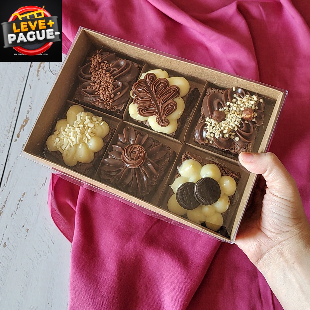 Produto - 10 Caixas para 6 Brownies - Tampa transparente - Kraft