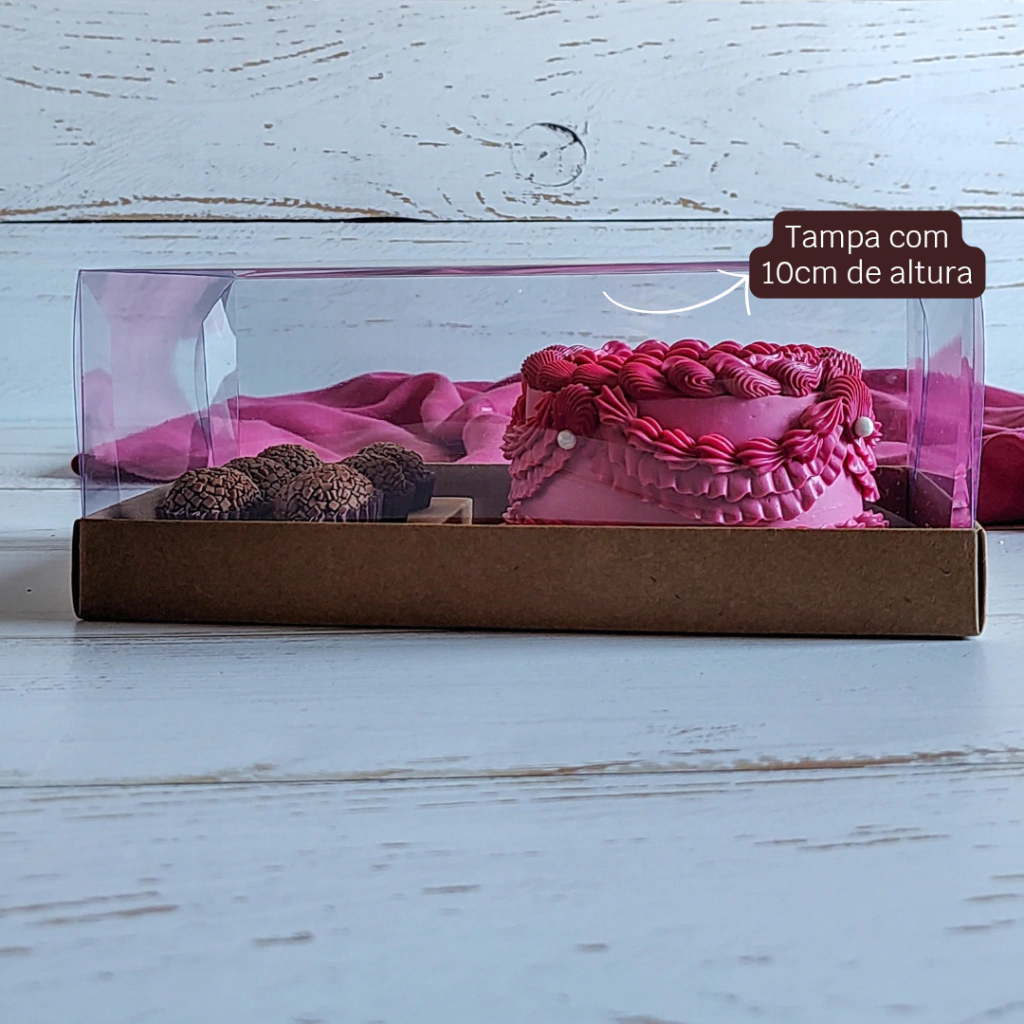 • Tampa transparente: PET 025 cristal, permitindo que a beleza dos seus doces fique em evidência.